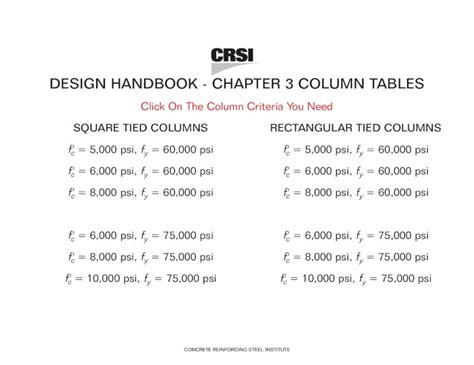 Read Online crsi column tables Kindle Editon